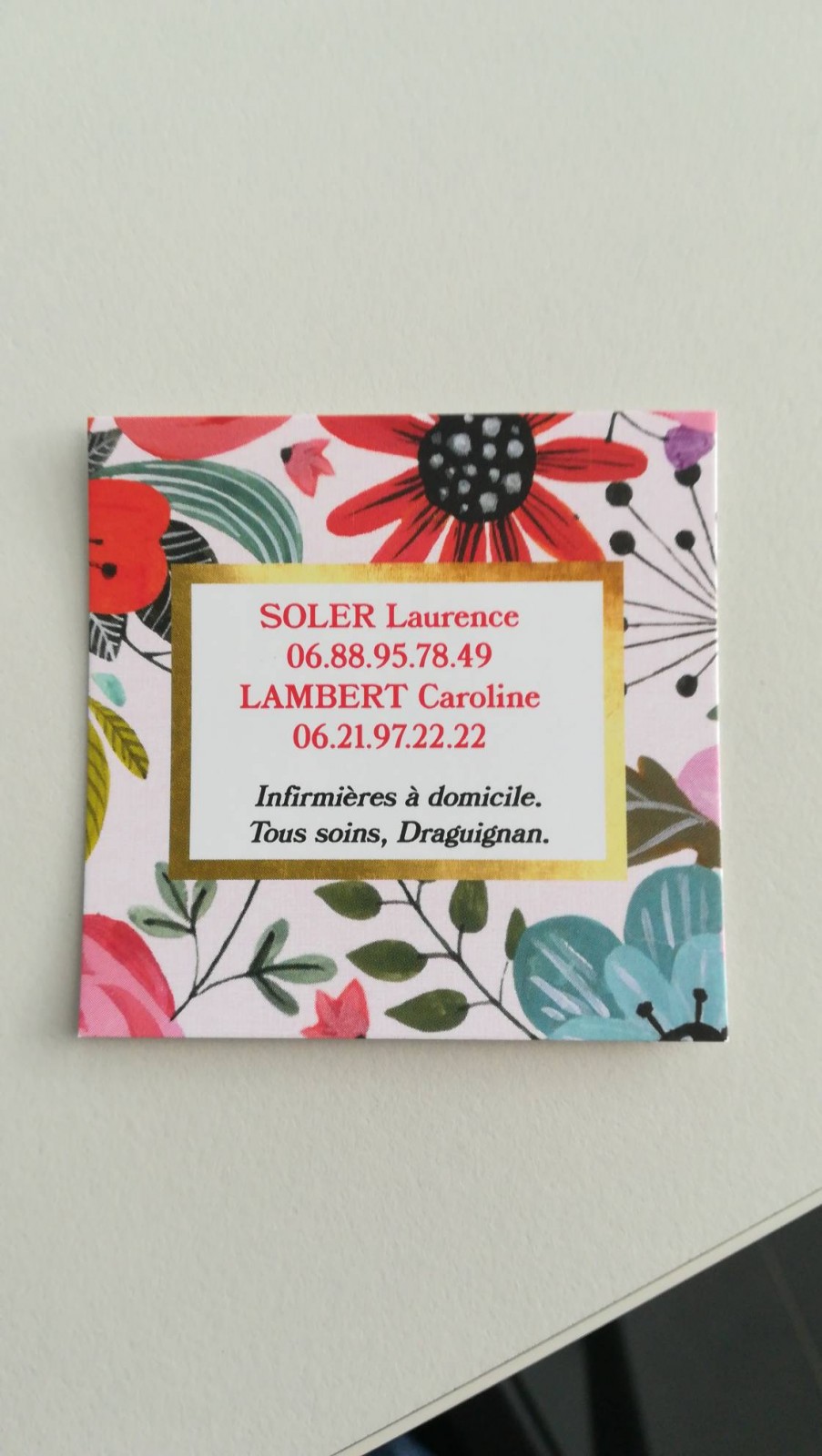les infirmières Laurence solaire et Caroline Lambert dispensent des soins de nature préventive et curative ou palliative visant à promouvoir, maintenir et restaurer la santé. Elle contribue à l'éducation à la santé et à l'accompagnement de personnes ou des groupes dans leur parcours de soins en lien avec leur projet de vie. vous pouvez contacter Laurence solaire au 06 88 95 78 49 ou bien contacter l'infirmière Caroline Lambert au 06 21 97 22 22.