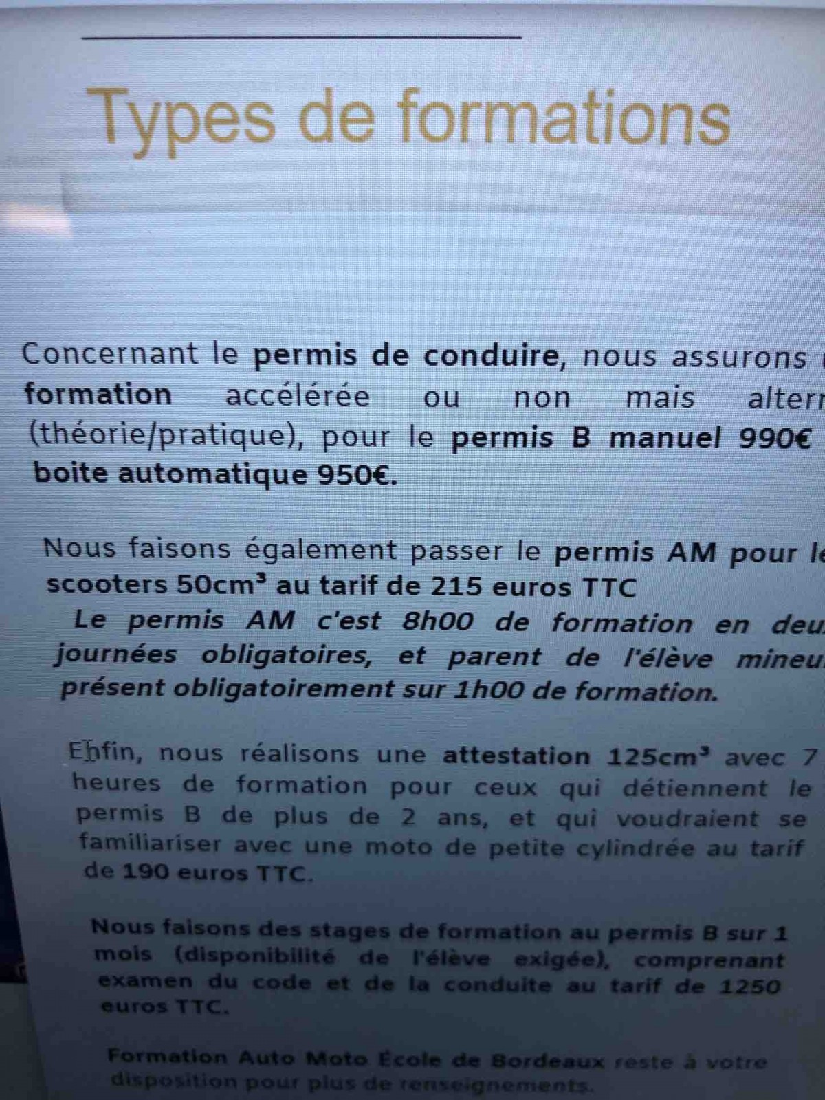 Savez-vous que chez auto moto école Bordeaux, nous vous proposons le permis à M pour 215 € TTC.